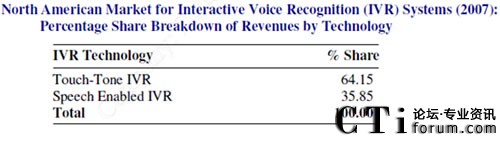 CTI論壇(ctiforum)11月3日消息(記者 楊佳林):根據(jù)Global Industry Analysts, Inc. 2010研究報(bào)告指出, 語音識(shí)別每?jī)赡甑膹?fù)合成長(zhǎng)率(CAGR)為97.7%, 其中美, 加占65%。以2007年的IVR銷售營(yíng)業(yè)額而言, 具有語音識(shí)別功能的IVR系統(tǒng)已占有的1/3的比例, 顯示出語音識(shí)別系統(tǒng)已逐漸取代瀪復(fù)的IVR系統(tǒng),提供一步到位的服務(wù)。