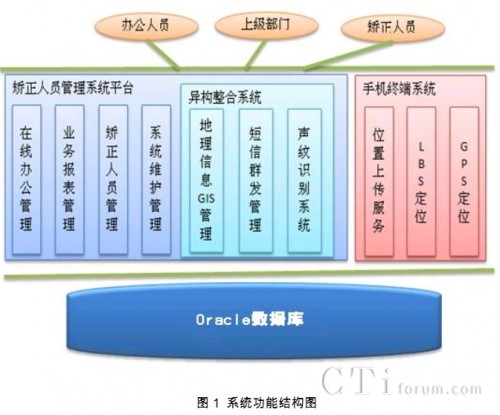 傳統(tǒng)的數(shù)據(jù)處理方式耗費(fèi)大量的人力物力,工作任務(wù)繁重,并且不易長(zhǎng)期保存。 基于以上原因,基于聲紋識(shí)別技術(shù)的司法矯正人員管理系統(tǒng)[以下簡(jiǎn)稱本系統(tǒng)]的主要功能是通過網(wǎng)絡(luò)進(jìn)行人員手機(jī)定位、短信群發(fā)、數(shù)據(jù)上報(bào)、數(shù)據(jù)統(tǒng)計(jì)和報(bào)表打印,并且以GIS圖形化顯示人員位置等,既方便快捷實(shí)用,也更加形象生動(dòng);同時(shí)本系統(tǒng)充分考慮到系統(tǒng)安問題。另外本系統(tǒng)也為司法行政工作中產(chǎn)生的其他信息和各基層單位相關(guān)組織人員信息情況提供動(dòng)態(tài)維護(hù)功能。