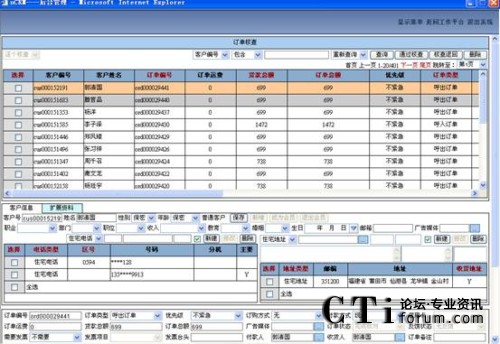 當客戶來電時,如為老客戶,系統(tǒng)自動彈屏顯示主叫號碼,被叫號碼(包括區(qū)號、電話號),同時檢索出客戶信息、訂購歷史(購買時間,所購產(chǎn)品,數(shù)量,金額,購買方式,支付方式,主要獲取信息渠道)、聯(lián)系歷史、投訴/咨詢歷史(投訴產(chǎn)品,投訴內(nèi)容,解決方法等)等資料并顯示。而對于新客戶,則可創(chuàng)建新客戶并可記錄客戶的基本信息和擴展信息等。