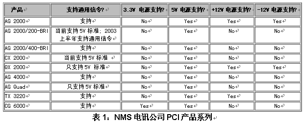 表1列出了當(dāng)前和即將推出的NMS板卡可支持的信令標(biāo)準(zhǔn),以及NMS板卡對(duì)主板電源輸入范圍的需求。
