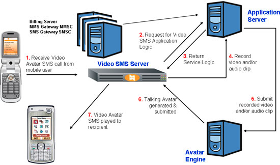 化身引擎 — 化身引擎的一個關鍵功能是接收來自應用服務器的音頻片斷,并采用復雜的算法對語音消息和化身圖像的唇動進行同步,處理后的結果就是一段“正在說話”的化身視頻。處理文件被發(fā)送回應用服務器,在視頻SMS服務器存取這些視頻文件進行播放之前,這些文件將被存放在應用服務器上。