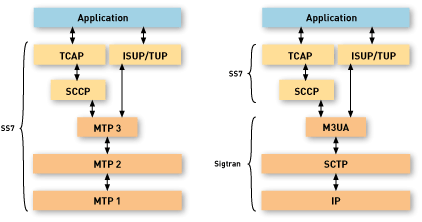 圖1: NMS的SS7 和SIGTRAN協(xié)議堆棧