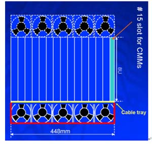 ATCA的架構(gòu)主要包括以下部分:正面插槽,RTM,PEM,背板,CMMs,散熱系統(tǒng)。(參考圖一與圖二)