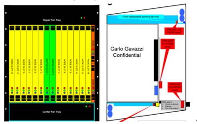 另外在機(jī)架內(nèi)的放置空間上,42U的標(biāo)準(zhǔn)機(jī)架里可以放3臺12~14U機(jī)箱,若將機(jī)箱降至10U則可以放置4臺,這樣可以增加整體空間的利用率,所以有了10U機(jī)箱的設(shè)計需求。在各種不同高度的機(jī)箱設(shè)計中,風(fēng)扇散熱系統(tǒng)的放置位置、方式與總散熱效能能夠達(dá)到200*14=2800W,將會是ATCA機(jī)箱設(shè)計所要考慮的最重要因素之一,尤其是在10U的機(jī)箱設(shè)計上。