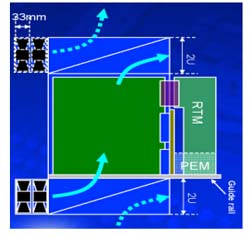 總體而言,目前具有前方進(jìn)氣風(fēng)扇與后方排氣風(fēng)扇組合散熱系統(tǒng)的ATCA機(jī)箱皆為12U機(jī)箱。而在10U機(jī)箱方面由于受總高度的限制,現(xiàn)階段還是以以前方進(jìn)氣或后方進(jìn)氣的設(shè)計為主。因為少了雙向風(fēng)扇的對流作用,所以必須采用效率更高的風(fēng)扇與較佳的進(jìn)風(fēng)或出風(fēng)設(shè)計才能達(dá)到理想的散熱效果。
