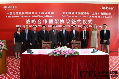 CTI論壇(ctiforum)6月23日消息(記者 楊佳林):上海—全球領(lǐng)先的創(chuàng)新耳麥解決方案提供商大北歐公司(GN Netcom)與中國(guó)電信上海公司(以下簡(jiǎn)稱上海電信)今日隆重舉辦了 “戰(zhàn)略合作框架協(xié)議簽約儀式”。上海電信資深經(jīng)理花銳強(qiáng)、大北歐公司亞太區(qū)總裁Mark Leigh,及雙方公司高層領(lǐng)導(dǎo)共同出席了此次慶典。Mark Leigh先生還代表了大北歐公司將Edouard Suenson先生——“將電報(bào)引入中國(guó)的丹麥人”的雕像捐贈(zèng)給上海電信博物館,見(jiàn)證了中國(guó)與丹麥源于19世紀(jì)末在通信方面的成功合作。