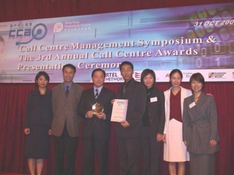 香港 2002年10月31日-在全球呼叫中心業(yè)享有盛譽(yù)的香港客戶中心協(xié)會日前宣布了2002年度各獎項(xiàng)獲獎名單。在今天下午舉行的第三屆年度呼叫中心頒獎典禮上,飛翱網(wǎng)訊成為年度最佳呼叫中心獎得主之一。這是繼去年以來,飛翱網(wǎng)訊連續(xù)第二年獲此殊榮。與此同時,來自于飛翱網(wǎng)訊香港公司的業(yè)務(wù)主管,Gray Ho先生被授予了呼叫中心團(tuán)隊(duì)領(lǐng)導(dǎo)人優(yōu)勝獎。
