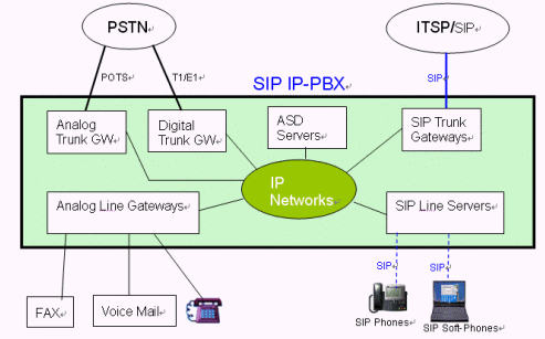 MOSA的SIP IP-PBX是一個完整的商用交換機系統(tǒng),能提供企業(yè)完整的通信服務,因應各種不同接口的連結需求,例如公眾電信系統(tǒng)(PSTN)、SIP服務商、傳真機、電話機、語音信箱、SIP IP Phone、SIP Soft-phone、Wifi-Phone以及各種SIP終端設備等等,MOSA的SIP IP-PBX提供模塊化的接口連接設備,每一種接口連接設備均配備有以太網(wǎng)絡接口,可以透過IP網(wǎng)絡相互連結,使得各分公司之間通信零距離。MOSA SIP IP-PBX除了解決基本的接口連接外,也提供各式各樣的應用服務服務器(Application Service Devices),增進整體系統(tǒng)的功能,譬如:網(wǎng)絡型電話會議,網(wǎng)絡型廣播,移動辦公功能等。