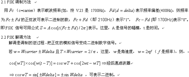 FSK即"頻移鍵控",它的英譯為"Frequency Shift Keying"。它是在電話線上進行二進制數據(當然,也包括"Caller