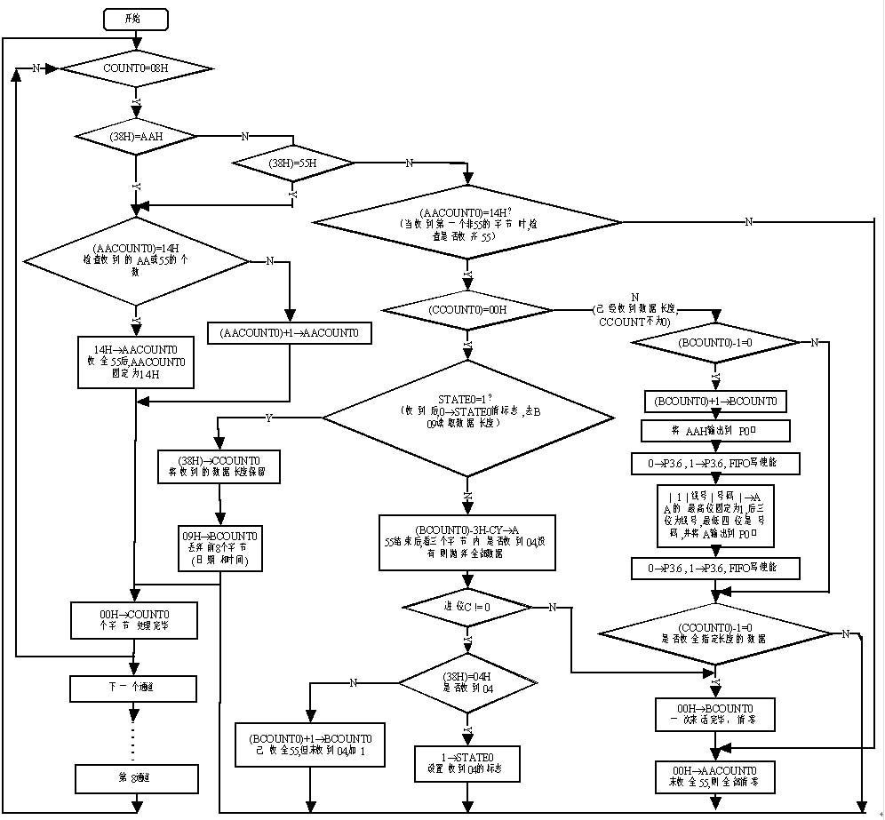 (3)在連續(xù)收到至少20個55h數據(即通道占用信號)后,程序才往下執(zhí)行,否則表明此次FSK數據出錯,應退出本次收號。