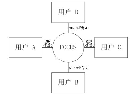 緊耦合會議的邏輯架構(gòu)圖如圖三所示。會議中的核心是"會議中心(conference focus)",每一個會議都有一個會議中心,由一個URI標(biāo)識,用戶通過聯(lián)系這個URI參加到一個會議中去。會議中心和用戶之間的拓撲結(jié)構(gòu)為星性結(jié)構(gòu)。會議中心為用戶提供并維持一個信令連接,并且可以執(zhí)行會議策略,實現(xiàn)對會議的控制和管理。