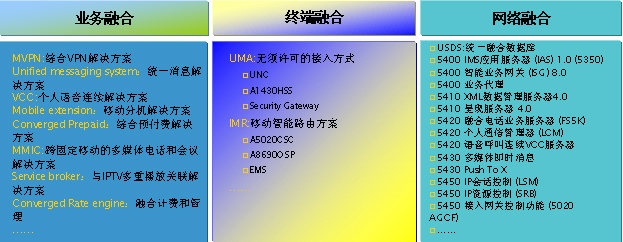 在全球部署了最大規(guī)模的移動IMS和應用,提供視頻的共享、多媒體會議等融合業(yè)務