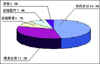 其中,視頻會議業(yè)務是目前階段視頻通信發(fā)展的重點,其主流是基于IP協(xié)議的視頻會議技術。目前的市場特點是硬件視頻會議已經(jīng)被接受,軟件視頻會議正在成長。但是競爭格局分散,仍然處于“戰(zhàn)國時代”,還沒有一家公司處于絕對的統(tǒng)治地位。當前視頻會議的主要應用場所分布如圖1。