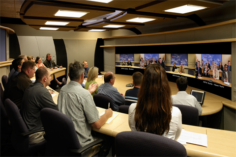 而真正的極致遠真環(huán)境則是由一組而不是一個攝像頭將遠端會場多個角度同時拍攝,組合為完整的無拼接畫面;會場顯示系統(tǒng)全景顯示遠端會場,每個角度與會者均清晰可辨;本地和遠端渾然一體,仿佛身居同一個會場;這就是寶利通極致遠真帶給您的當(dāng)今最高效遠程交流工具,以其獨特的優(yōu)勢彌補您93%的信息空白。