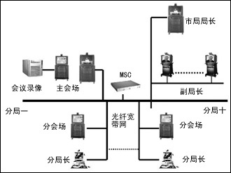在每個分局和信息中心機(jī)房設(shè)置分會場,實(shí)現(xiàn)網(wǎng)絡(luò)視頻會議和遠(yuǎn)程技術(shù)支持。分會場的會議終端設(shè)備選用VCON的會議室型柜式終端MediaConnect