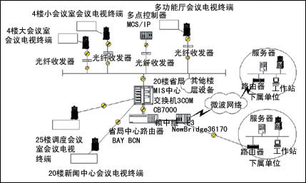 云南電力集團(tuán)有限公司會(huì)議電視系統(tǒng)一期工程視頻方案基于H.323標(biāo)準(zhǔn),以路由器連接專線(或DDN、幀中繼)為傳輸媒介,全省會(huì)議電視用戶以星形網(wǎng)絡(luò)結(jié)構(gòu)通過路由器和省調(diào)MCS/IP聯(lián)接,全網(wǎng)運(yùn)行速率64kb/s--1920kb/s,分級(jí)可調(diào)。中心會(huì)場(chǎng)設(shè)在云南省電力局大樓內(nèi)。在省電力局采用H.323 多點(diǎn)會(huì)議服務(wù)器MCS/IP,可連接32個(gè)用戶,覆蓋了全省,包括昆明電力大樓、調(diào)度中心、昆明發(fā)電廠、曲靖電廠、漫灣電廠、滇西電業(yè)局、滇中電業(yè)局、滇東電業(yè)局、陽宗海電業(yè)局、昆明供電局、昆明供電局、宣威電廠,除Hub外,其他會(huì)場(chǎng)均通過Cisco 3810路由器接入,在路由器中運(yùn)行RSVP協(xié)議。