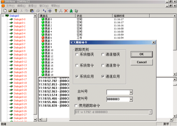 ICANS平臺提供監(jiān)控模塊,用于控制ICANS平臺的啟動和監(jiān)視平臺的工作狀況,以及連入其他應(yīng)用模塊。該平臺可以以圖表方式全屏顯示所有線路狀態(tài)(空閑/撥號/語音/傳真)及訪問總次數(shù),詳細(xì)反映每條線路、每個任務(wù)的實時運行情況,便于用戶及時掌握系統(tǒng)的運行情況。