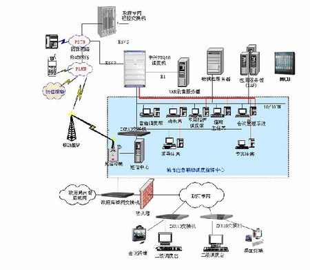 下圖是一個(gè)城市應(yīng)急聯(lián)動中心具體組網(wǎng)拓?fù)洌?br>