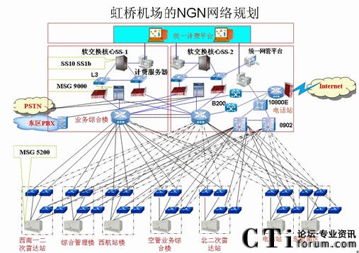 虹橋機場程控交換機新建和擴容項目,實際上是一個包含多業(yè)務的項目和系統(tǒng),即以數(shù)據(jù)網(wǎng)絡作為基礎承載平臺,軟交換作為核心技術(shù),為用戶提供了豐富的業(yè)務,很好地解決了話音、數(shù)據(jù)業(yè)務的融合。