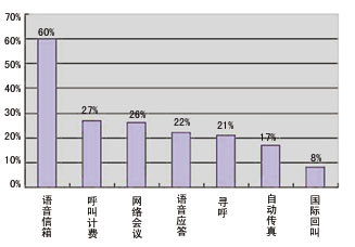 現(xiàn)在常用的辦公交流方式還是以傳統(tǒng)的電話、互聯(lián)網(wǎng)、電子郵件為主,而Voice Mail的方式卻比較少?梢钥闯觯赩oice Mail上還有很大的發(fā)展空間。