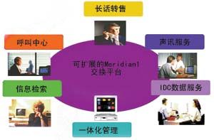由于IP電話(huà)及計(jì)費(fèi)系統(tǒng)是搭建在通廣北電的Meridian 1交換平臺(tái)上,因此很容易實(shí)現(xiàn)其他業(yè)務(wù)的并存和提升。在項(xiàng)目實(shí)施中還可以加入呼叫中心的功能。它的構(gòu)建不僅能滿(mǎn)足現(xiàn)今IP電話(huà)的服務(wù)功能,還能為今后運(yùn)營(yíng)商的其他業(yè)務(wù)提供服務(wù)。