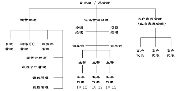 在呼叫中心的組織結(jié)構(gòu)及職能分工上,外包型呼叫中心與企業(yè)自建型呼叫中心有很多共同點(diǎn),它們間主要的區(qū)別在于外包型呼叫中心分工更細(xì),而且有很多專門人員,而企業(yè)自建型呼叫中主的很多職能是由一人兼任或借助其它部門的支持和服務(wù)。從一個(gè)典型的外包型呼叫中心的組織結(jié)構(gòu)來(lái)看,通常會(huì)設(shè)置如下一些組織單位: