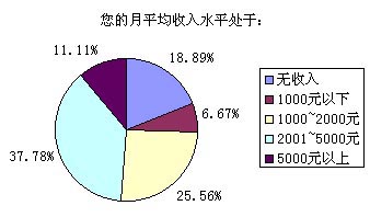 以上選擇中,選擇答案A~E的被訪者比例分別為18.89%、6.67%、25.56%、37.78%和11.11%,也就是說(shuō)我們這次調(diào)查的重頭是放在一般收入水平和無(wú)收入(學(xué)生)兩類(lèi)人群,這兩個(gè)人群也正是SMS市場(chǎng)上最活躍的分子。高收入和低收入人群要么因?yàn)橘Y金充裕而選擇語(yǔ)音業(yè)務(wù),要么就是因?yàn)橘Y金的缺乏而盡量不使用移動(dòng)通信方式。
