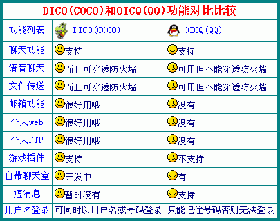 呵呵,前一陣子駕鼠逛網(wǎng),我發(fā)現(xiàn)了一款類似于時下QQ但比時下QQ還要好用且功能還要多的出色的新型的中文網(wǎng)絡(luò)即時通信工具軟件----夢幻尋呼DICO 2002!它集"一般聊天、語音聊天、文件傳送、郵箱功能、個人web/FTP、支持游戲插件、自帶聊天室"等功能于一體且可同時以用戶名或號碼登錄,開辟了網(wǎng)絡(luò)通訊軟件的新境界。是由深圳聚才網(wǎng)絡(luò)科技發(fā)展有限公司開發(fā)的共享軟件,最近版本是DICO1.11版,適用于Win 9X/NT/2K等操作系統(tǒng),語言界面為全中文界面,下載后的可執(zhí)行文件僅2.55M大。