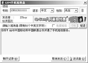 目前IM與各種移動(dòng)終端設(shè)備的結(jié)合也越來(lái)越多。使用QQ向手機(jī)發(fā)送短信需要手機(jī)開通移動(dòng)QQ服務(wù),單擊對(duì)方頭像圖標(biāo),在打開的快捷菜單中選擇“手機(jī)短訊”命令,在打開的對(duì)話框中輸入信息,然后點(diǎn)擊發(fā)送即可完成,這時(shí)對(duì)方的手機(jī)就可以收到一個(gè)消息。給BP機(jī)發(fā)短訊也是一樣,不過(guò)對(duì)方的BP機(jī)服務(wù)臺(tái)必須是QQ所支持的情況下才行。當(dāng)對(duì)方的手機(jī)收到你發(fā)來(lái)的短信后還可以回復(fù),這時(shí)候您的QQ會(huì)彈出“查看手機(jī)短訊”的窗口來(lái),非常方便。