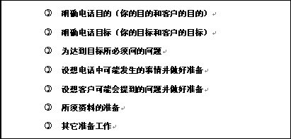 我們都知道面對面銷售的時候,準備工作會花去我們相當?shù)臅r間,在電話銷售中,由于時間少、客戶易掛電話等因素的存在,使得我們的準備工作更顯得重要。電話前的準備,就好象大樓的地基一樣,一個電話成功與否,能否達到目標,與準備工作充分不充分有很大的關系,尤其對Outbound