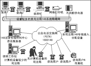 此方案使用后,以市為中心,可把周邊的各個(gè)縣、各個(gè)區(qū)聯(lián)成一個(gè)統(tǒng)一的148法律服務(wù)整體,各個(gè)縣、各個(gè)區(qū)的咨詢用戶只需要知道一個(gè)統(tǒng)一的148法律服務(wù)電話號碼,就可與最近的148法律服務(wù)臺接通進(jìn)行法律咨詢。