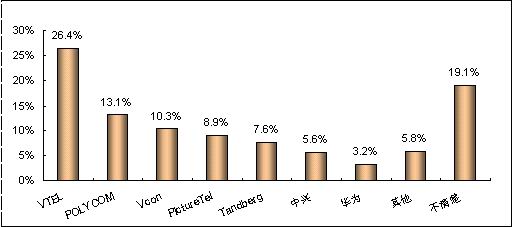 各品牌的認知度與其市場銷售情況息息相關(guān)。例如,VTEL是最早進入中國市場的視頻會議廠商,并在相當長的時期內(nèi)占據(jù)市場領(lǐng)先地位,取得顯著的品牌認知度是有其廣泛用戶基礎作為支撐的;POLYCOM雖然從1998年才開始進軍中國市場,但在基于IP的視頻會議系統(tǒng)的市場爭奪中取得較好的成績;PictureTel已經(jīng)被POLYCOM收購,品牌認知度也相對較低;而國內(nèi)品牌中興、華為剛剛起步,也很難達到較高的認知度。