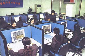 圖為經(jīng)過專業(yè)培訓的客戶服務代表正在親切客戶來電