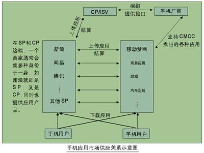 在這樣一個(gè)全新的銷售模式下,運(yùn)營(yíng)商的作用也越發(fā)凸顯出來(lái)。“夢(mèng)網(wǎng)是一個(gè)大的平臺(tái),SP是個(gè)小平臺(tái),SP再通過(guò)與CP建立合作,進(jìn)而將整個(gè)應(yīng)用市場(chǎng)與終端連接起來(lái),F(xiàn)在,我們?nèi)康膽?yīng)用都放到夢(mèng)網(wǎng)上面了!北本﹫(bào)童電子商務(wù)公司的一個(gè)工作人員說(shuō)。移動(dòng)夢(mèng)網(wǎng)的建立,事實(shí)上在手機(jī)廠商、應(yīng)用開發(fā)商、用戶三者之間搭了一個(gè)橋梁,將各種手機(jī)應(yīng)用集中在一個(gè)門戶網(wǎng)站,用戶需要時(shí),只需登陸到夢(mèng)網(wǎng)上面,點(diǎn)擊相關(guān)的網(wǎng)頁(yè),就可隨時(shí)下載所需要的應(yīng)用。