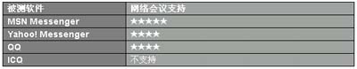 網(wǎng)絡(luò)會(huì)議也就是多個(gè)人在同一個(gè)窗口中發(fā)言,在這一點(diǎn)上無論是人數(shù)和操作簡(jiǎn)易程度上MSN無疑是最出色的;Yahoo! Messenger也比較方便,但設(shè)置比較復(fù)雜,點(diǎn)對(duì)點(diǎn)的響應(yīng)不如MSN出色。