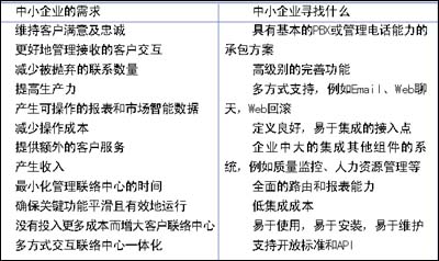 當(dāng)中小企業(yè)從“非正式”轉(zhuǎn)向“正式”客戶中心操作時,他們需要與大型企業(yè)相同的客戶中心能力。對于這些企業(yè),合適的解決方案必須要解決一個重要的業(yè)務(wù)問題,例如以易于客戶聯(lián)絡(luò)的各種方式交流,使其成為真正的客戶中心。也許更重要的是,實現(xiàn)成本必須處于控制之下且管理良好。中小企業(yè)期望的是功能完善的客戶聯(lián)絡(luò)中心,但是價格必須能夠承擔(dān)得起,低花費,低培訓(xùn)成本,短期內(nèi)即可實現(xiàn)。