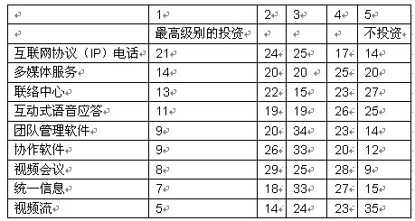 許多早期接受融合網(wǎng)絡(luò)的主要動因是為了減少語音成本。語音電話(VOIP)技術(shù)使融合網(wǎng)絡(luò)環(huán)境中的這一切都成為可能。語音電話實現(xiàn)了互聯(lián)網(wǎng)上的呼叫路由,繞過公共交換電話網(wǎng)絡(luò)(PSTN)進(jìn)行傳輸,從而避免了昂貴的費(fèi)用。我們的調(diào)查顯示,大部分公司將會在中短期內(nèi)把投資重點集中在融合網(wǎng)絡(luò)應(yīng)用上。