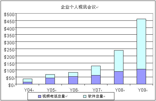 隨著網(wǎng)絡(luò)會議和實時通信成為桌面會議的首選之品以及在這些應(yīng)用中增加了視頻、網(wǎng)關(guān)服務(wù)器成為遠程ISDN系統(tǒng)的接入點,企業(yè)個人會議將迅速轉(zhuǎn)入到全IP、全軟件——編碼譯碼市場。同時我們還認為:幾年后,網(wǎng)絡(luò)會議對市場的這種主要沖擊力將會淡出。
