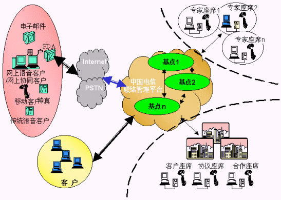 運(yùn)營(yíng)商建設(shè)呼叫中心在需求旺盛的地區(qū)先建設(shè)以省會(huì)或本地網(wǎng)核心局為基礎(chǔ)的單點(diǎn)外包呼叫中心,單點(diǎn)外包呼叫中心通過(guò)專線或IP網(wǎng)互相連接,并進(jìn)行統(tǒng)一路由管理,實(shí)現(xiàn)基點(diǎn)中心互連,形成更完善的服務(wù)支撐;單點(diǎn)呼叫中心與目前的各地中心(已經(jīng)建設(shè)的各類呼叫中心平臺(tái)資源)連接,形成強(qiáng)大的服務(wù)網(wǎng)絡(luò);