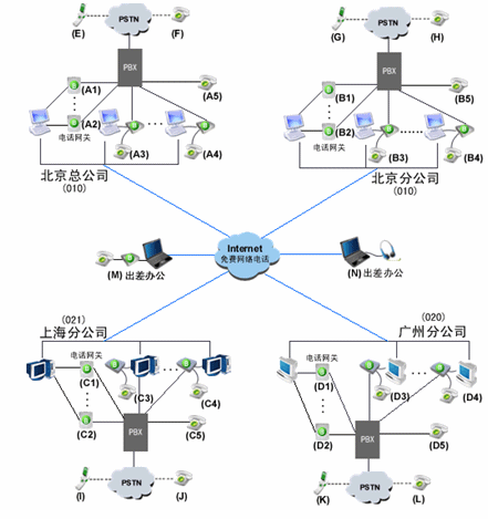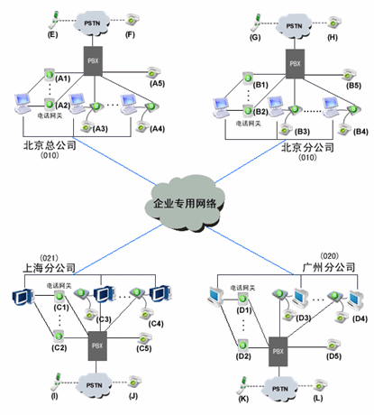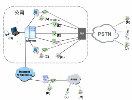 由玻瑞器客戶端和電話網(wǎng)關組成企業(yè)軟交換系統(tǒng)