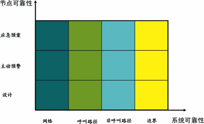 呼叫路徑的節(jié)點可靠性分析包括以下3個層次,即節(jié)點的設(shè)計可靠性、節(jié)點主動預警能力、節(jié)點的故障應急預案。