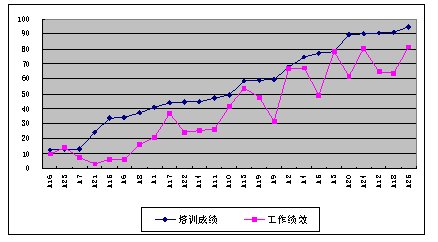 我們通過分析,圖3顯示,員工的培訓成績和其工作績效是無關的,這說明培訓是無效的。無效的原因也許是由于培訓內(nèi)容不合理或培訓組織實施不善等原因,總之培訓是無效的,需要改進。