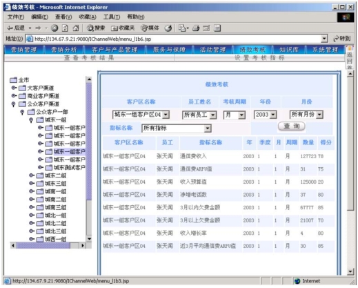 作為電信營(yíng)銷服務(wù)支撐系統(tǒng),其主要功能是支撐營(yíng)銷人員開展?fàn)I銷活動(dòng),并通過功能完善的考核系統(tǒng)幫助各級(jí)人員進(jìn)行工作管理。本系統(tǒng)可以對(duì)KPI指標(biāo)進(jìn)行靈活的設(shè)定,可以靈活定義多種參與考核的數(shù)據(jù)來源,使得各級(jí)主管能夠?qū)蛻艚M、社區(qū)(商業(yè)客戶區(qū)、農(nóng)村統(tǒng)包區(qū))的營(yíng)銷服務(wù)工作進(jìn)行考核評(píng)分。考核周期可以通過參數(shù)進(jìn)行設(shè)定(一般以月為單位)。