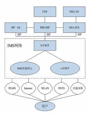 最上面一層是應(yīng)用層,由應(yīng)用和內(nèi)容服務(wù)器組成,負(fù)責(zé)為用戶提供IMS增值業(yè)務(wù),主要網(wǎng)元是一系列通過CAMEL、OSA/Parlay和SIP技術(shù)提供多媒體業(yè)務(wù)的應(yīng)用平臺。運(yùn)營商可以自行開發(fā)一些基于SIP的應(yīng)用,通過標(biāo)準(zhǔn)SIP接口與IMS系統(tǒng)連接;如果運(yùn)營商需要連接第三方SP的應(yīng)用,IMS可以和標(biāo)準(zhǔn)的API,如OSAAPI連接,通過OSA/ParlayGW對第三方非信任的SP業(yè)務(wù)進(jìn)行鑒權(quán)和管理等。