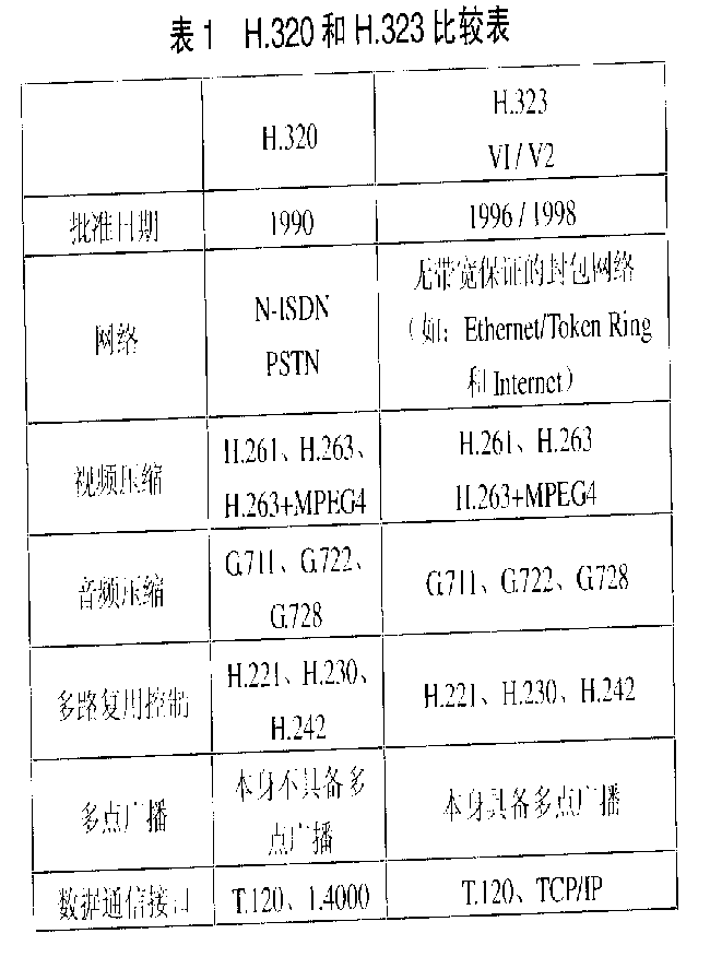 2.3 H.320和H.323比較(表1)