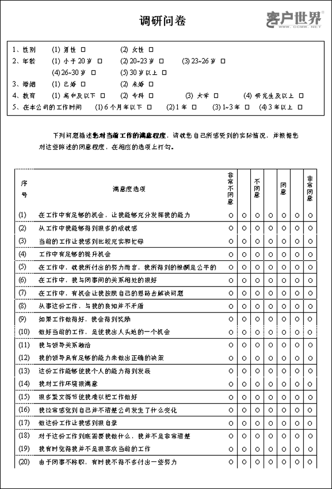 對(duì)于呼叫中心的實(shí)際情況來(lái)說(shuō),采用“明尼蘇達(dá)工作滿(mǎn)意度量表”(Minnesota Satisfaction Questionnaire,簡(jiǎn)稱(chēng)MSQ)效果最好,因?yàn)椋?