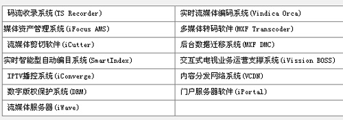 VindicaIPTV寬帶視頻應(yīng)用系統(tǒng)提供視頻收錄、編碼、轉(zhuǎn)碼、編目、播控系統(tǒng)、業(yè)務(wù)運(yùn)營(yíng)支撐、內(nèi)容分發(fā)VCDN、數(shù)字版權(quán)保護(hù)、終端機(jī)頂盒管理、媒體資產(chǎn)管理、視頻海量存儲(chǔ)及遷移等功能,可同時(shí)支持PC、符合ISMA標(biāo)準(zhǔn)的STB等不同播放終端。