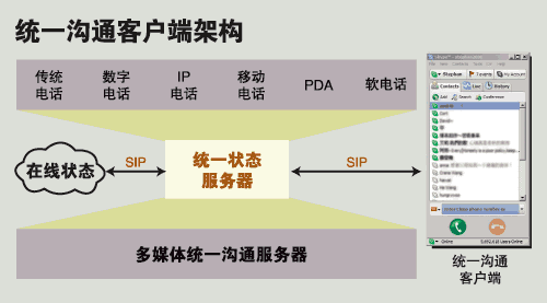 從MSN、QQ提供的語音聊天到曾經(jīng)風(fēng)靡一時(shí)的Skype,再到今天思科、北電、微軟、Avaya等推出的統(tǒng)一溝通桌面客戶端系統(tǒng),通信的“最后一公里”發(fā)生了根本的轉(zhuǎn)變。原來為了節(jié)省長途話費(fèi)而設(shè)計(jì)的VoIP,今天和ERP、CRM一樣成為了以提高企業(yè)運(yùn)營效率為目的的核心生產(chǎn)力系統(tǒng)。統(tǒng)一溝通最令人憧憬的未來是給最終用戶提供一個(gè)友好的通信界面:“所有的信息源匯總到一起,而用什么方式來取得這個(gè)信息,只要在手邊最方便的工具上輕輕點(diǎn)擊就OK了!