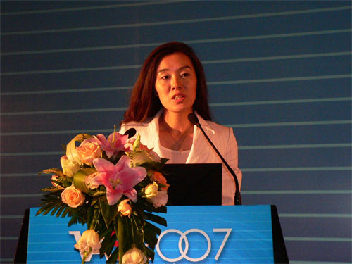 圖為NTTDoComo北京事務所對外業(yè)務高級經理陳文雅作題為“日本3G應用、運營與挑戰(zhàn)”的演講。