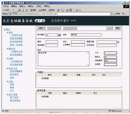 但是,隨著組織轉向自助服務,對復雜維護過程的需要將隨之出現。如果要采用自助服務,必須從一開始就做得很好。上圖為人性化的天匯幫助臺系統(tǒng)的自助服務功能界面設計。